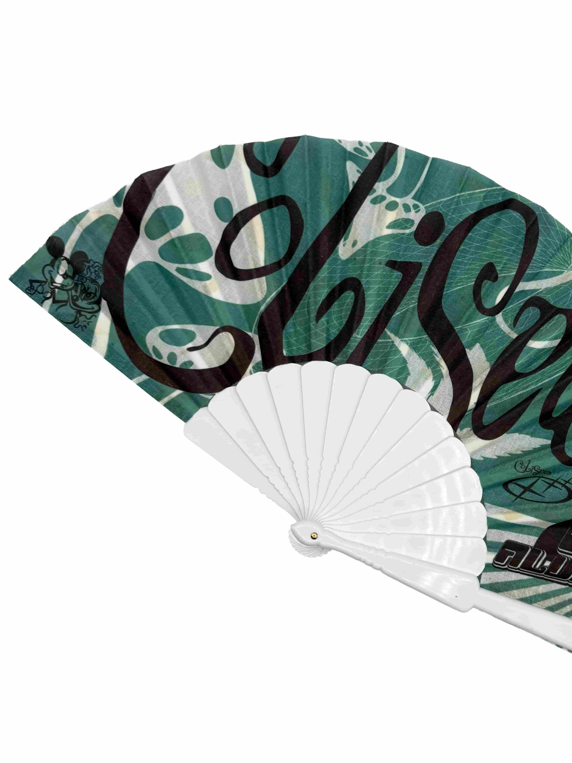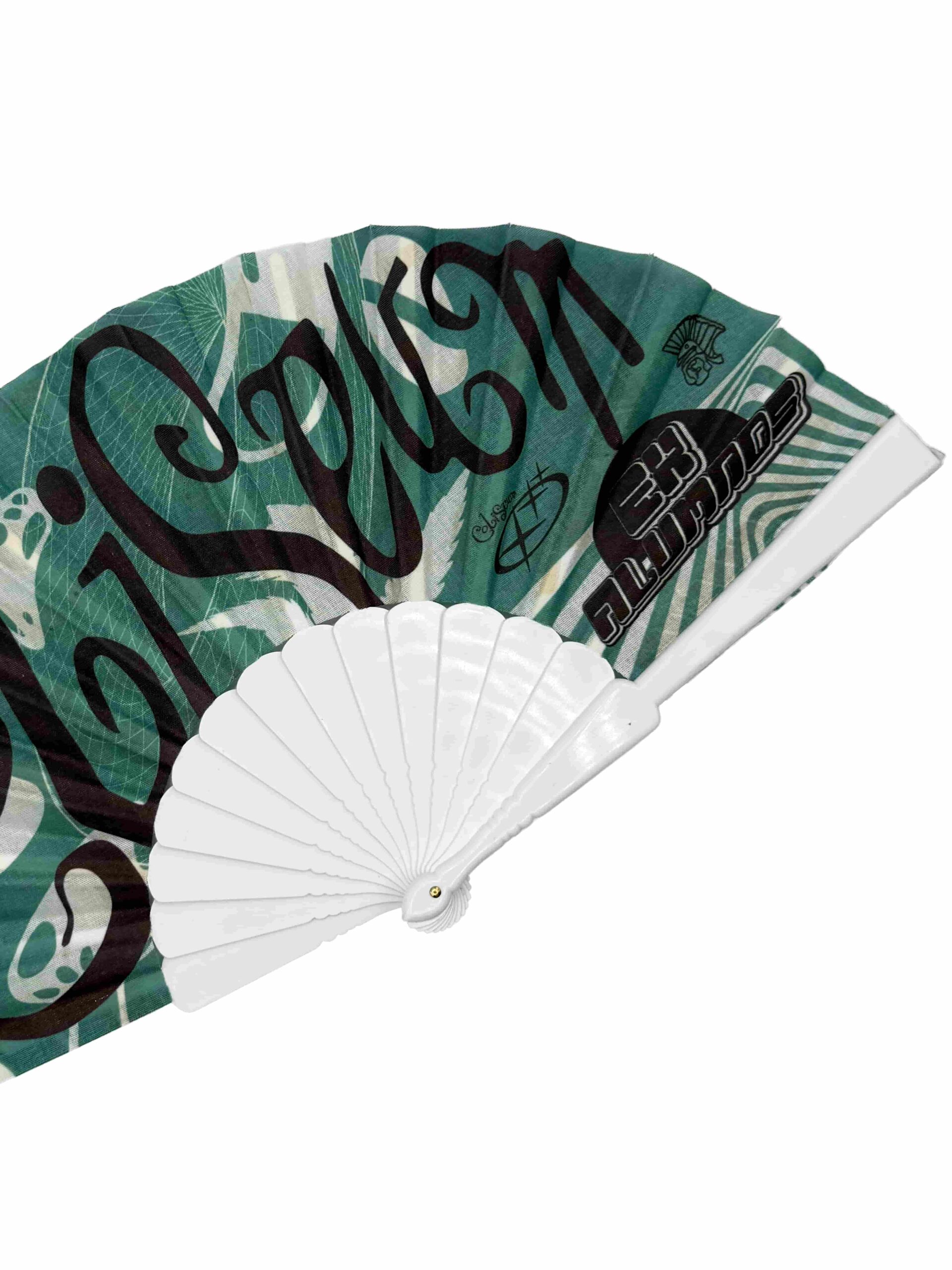 Abanico que representa nuestra etapa musical conocida como EXALUMNOS. Varillaje disponible en blanco o negro.