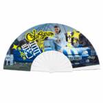 Celebra con estilo «La Última» gran fiesta del año 2024 con este abanico con el logo de Coliseum en amarillo destacado sobre un fondo con tonalidades de azul. Perfecto para acompañarte en la pista, este abanico fusiona diseño y energía para que cada movimiento destaque. Con varillaje de cuatro colores vibrantes: verde flúor, transparente, fucsia, y amarillo pastel.
