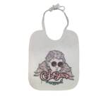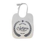 Babero de bebé con cordones en distintos modelos estampados. Confeccionado con dos capas de tejido: la primera de popelín liso y la segunda de rizo absorbente mejor los líquidos. Costura ribeteada en todo el contorno.