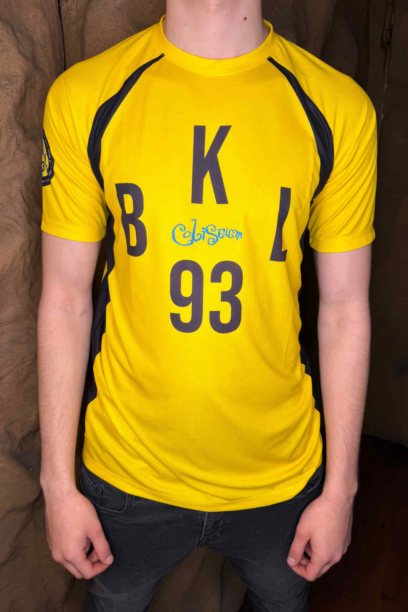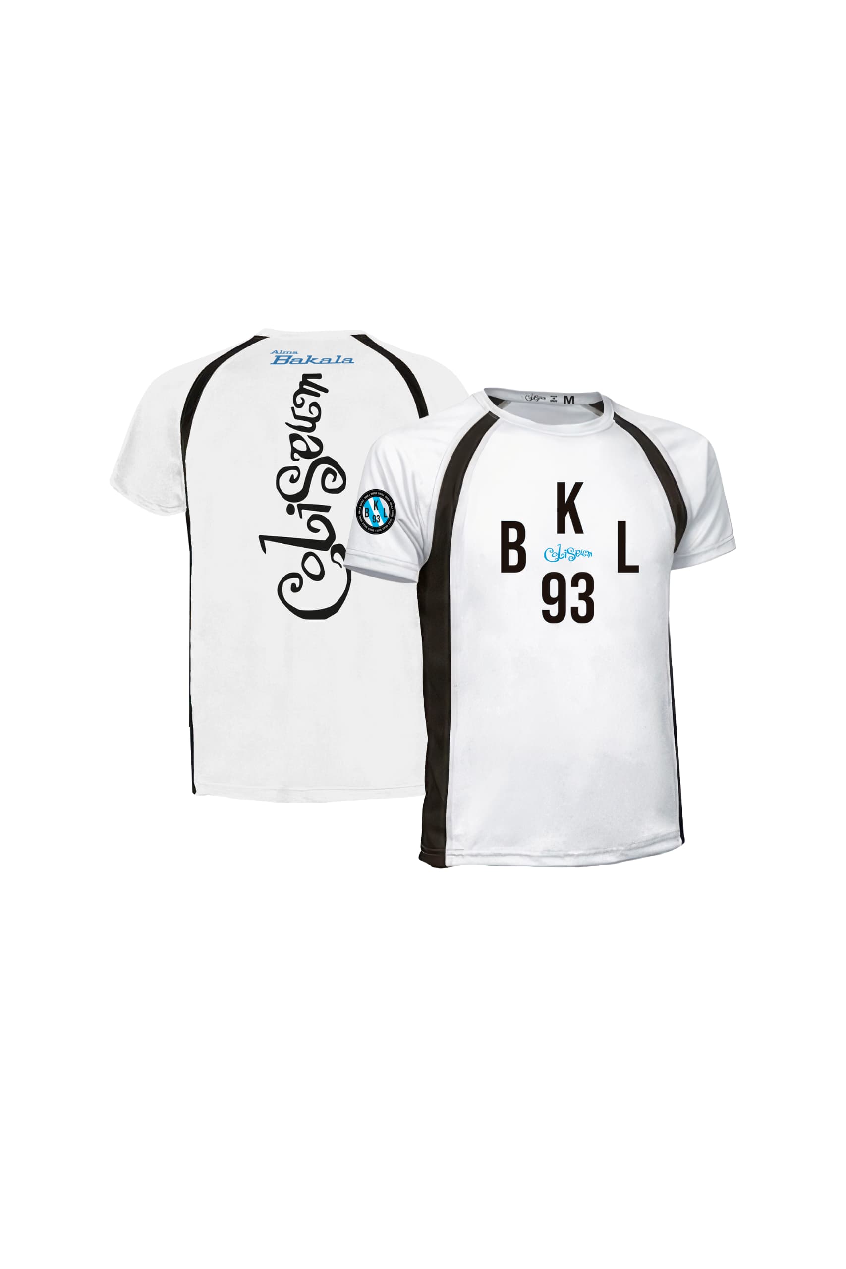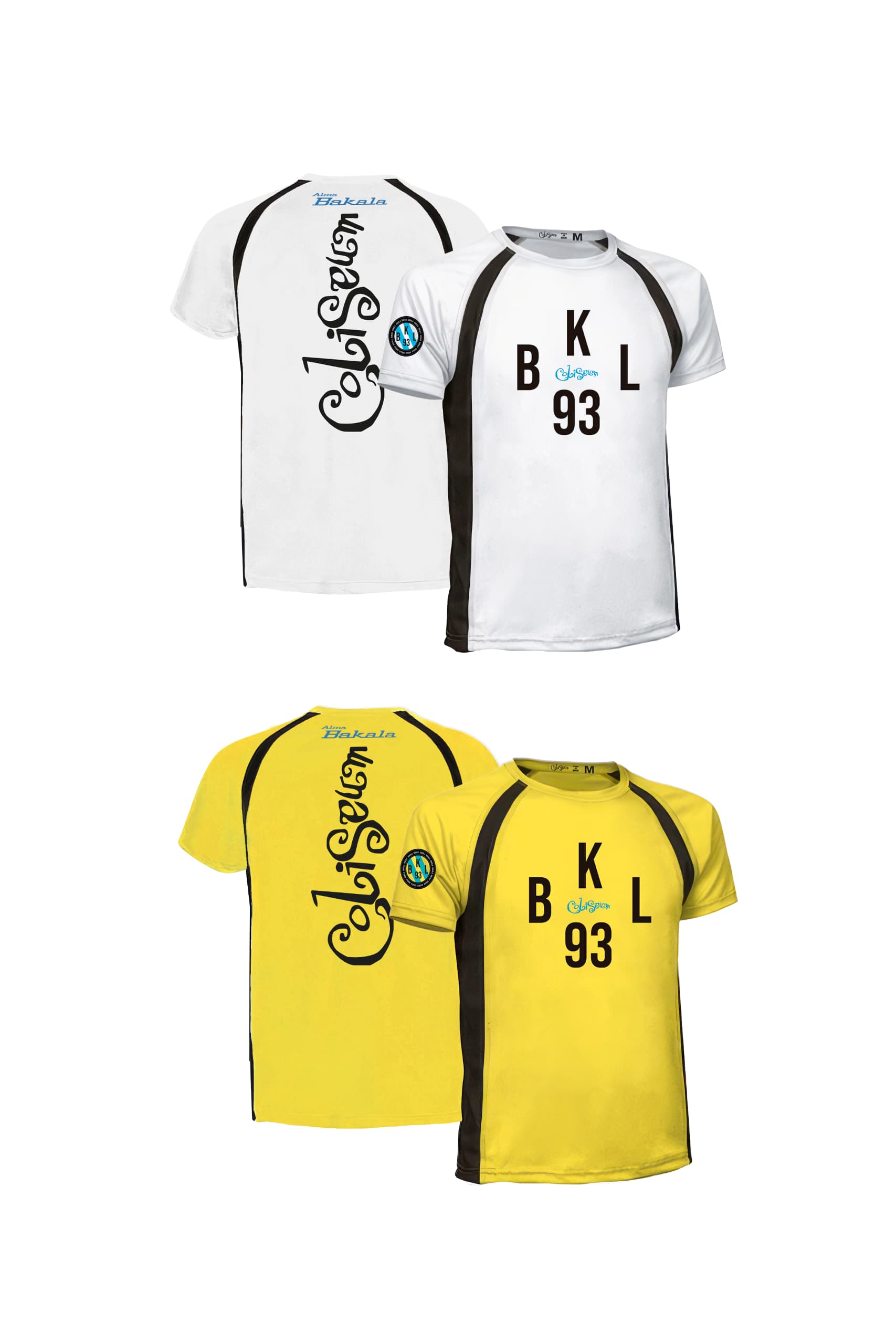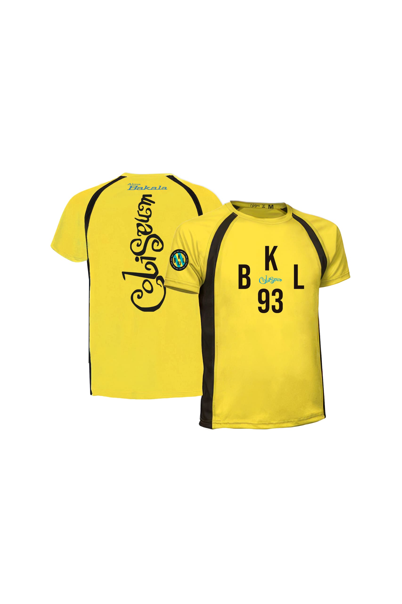 Ligera, en blanco o amarillo. Frontal con las siglas BKL93 y el logo Coliseum. Trasera con el mensaje ALMA BAKALA y el logo Coliseum en grande.
