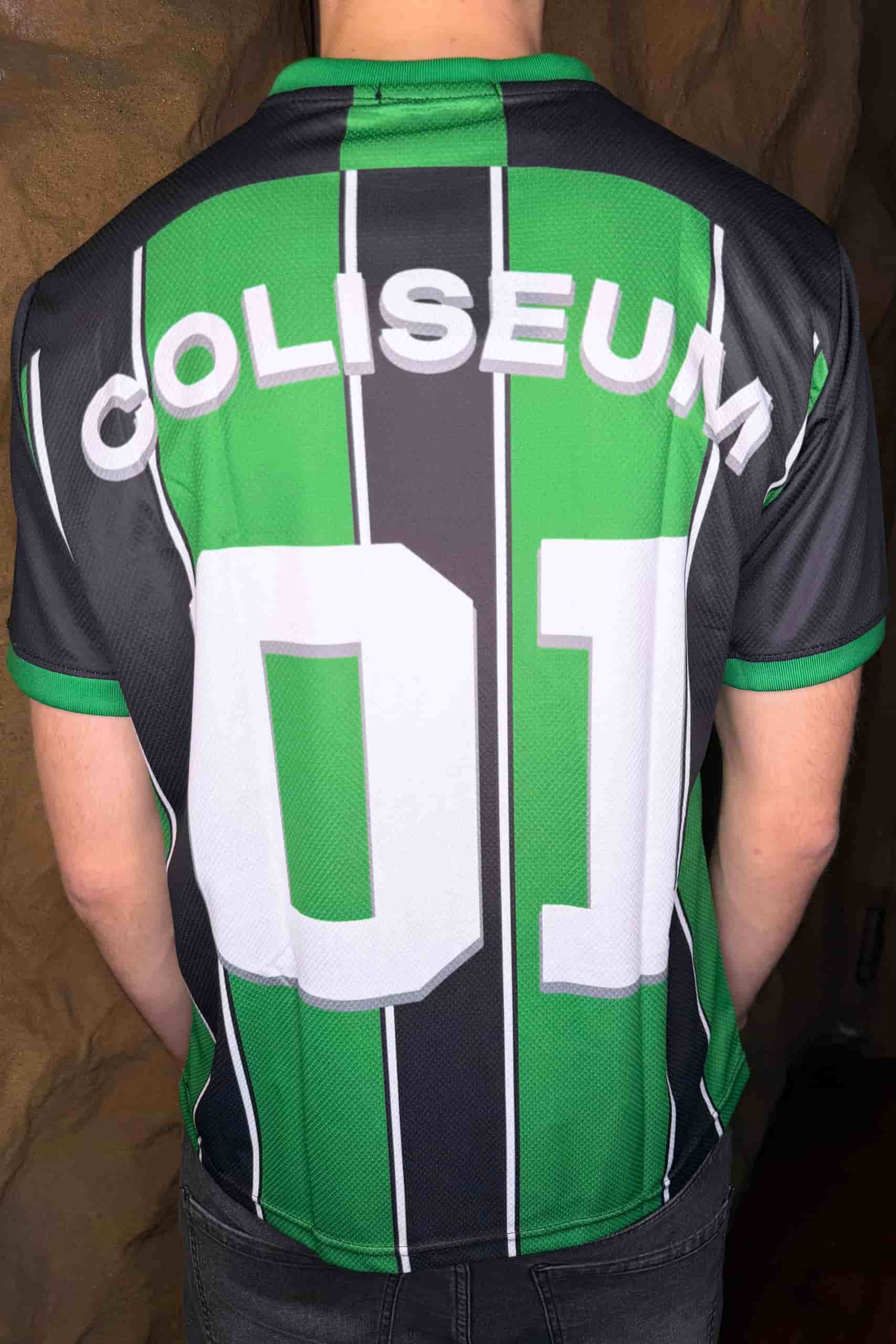Logo Coliseum en el pecho, el escudo bordado y logo de la cabeza romano. En la espalda, el dorsal 01 junto al nombre COLISEUM. ¡Últimas unidades disponibles!
