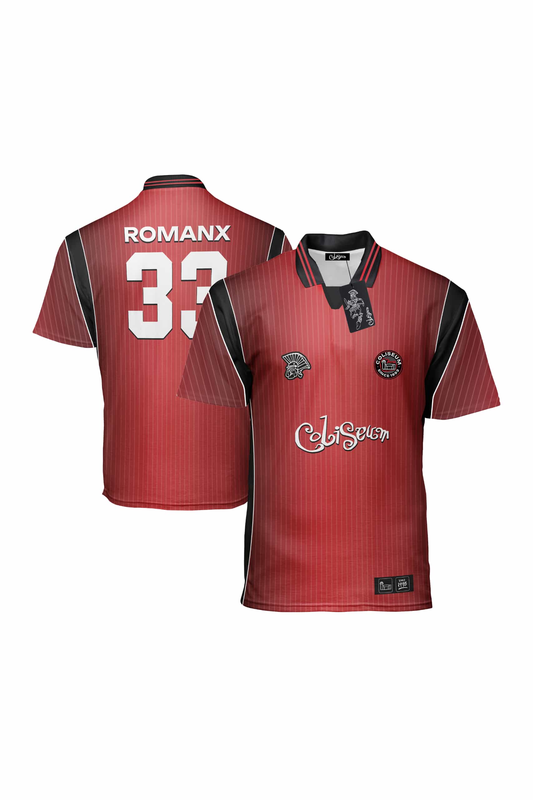Camiseta fútbol Romanx edición limitada diseñada con un estilo retro futbolero, combina la estética clásica con la energía moderna que define nuestras fiestas.