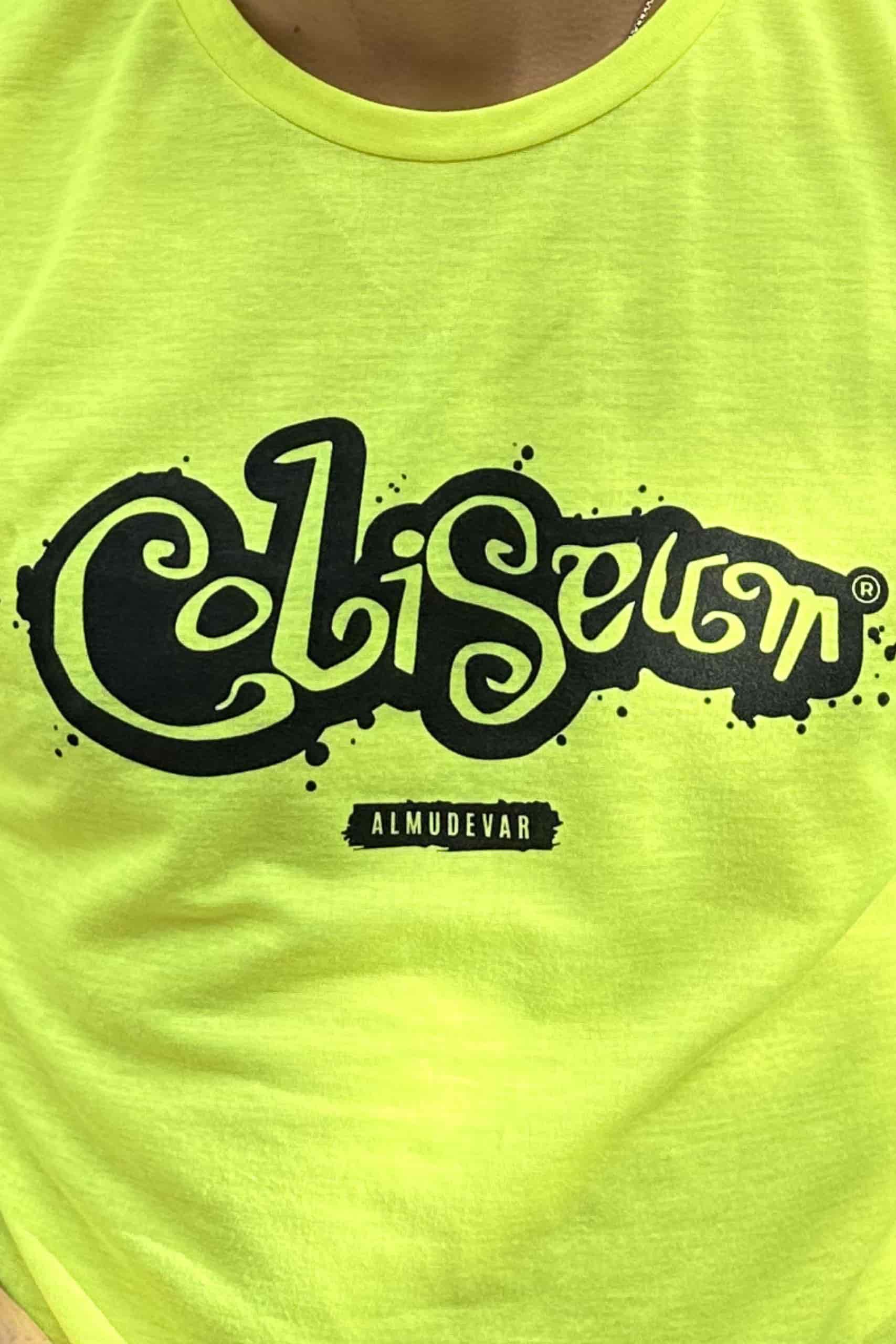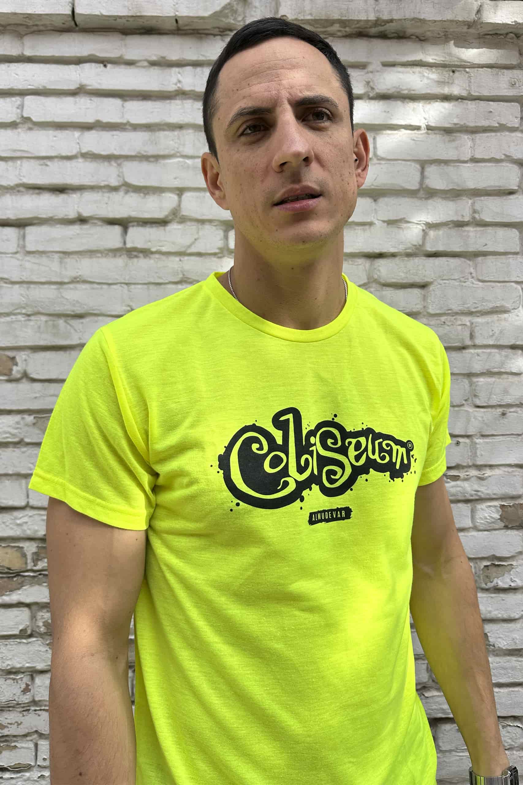 Camiseta amarilla fluor, con el logotipo de Coliseum por delante y el logo de Ivan Xtreme por detrás.