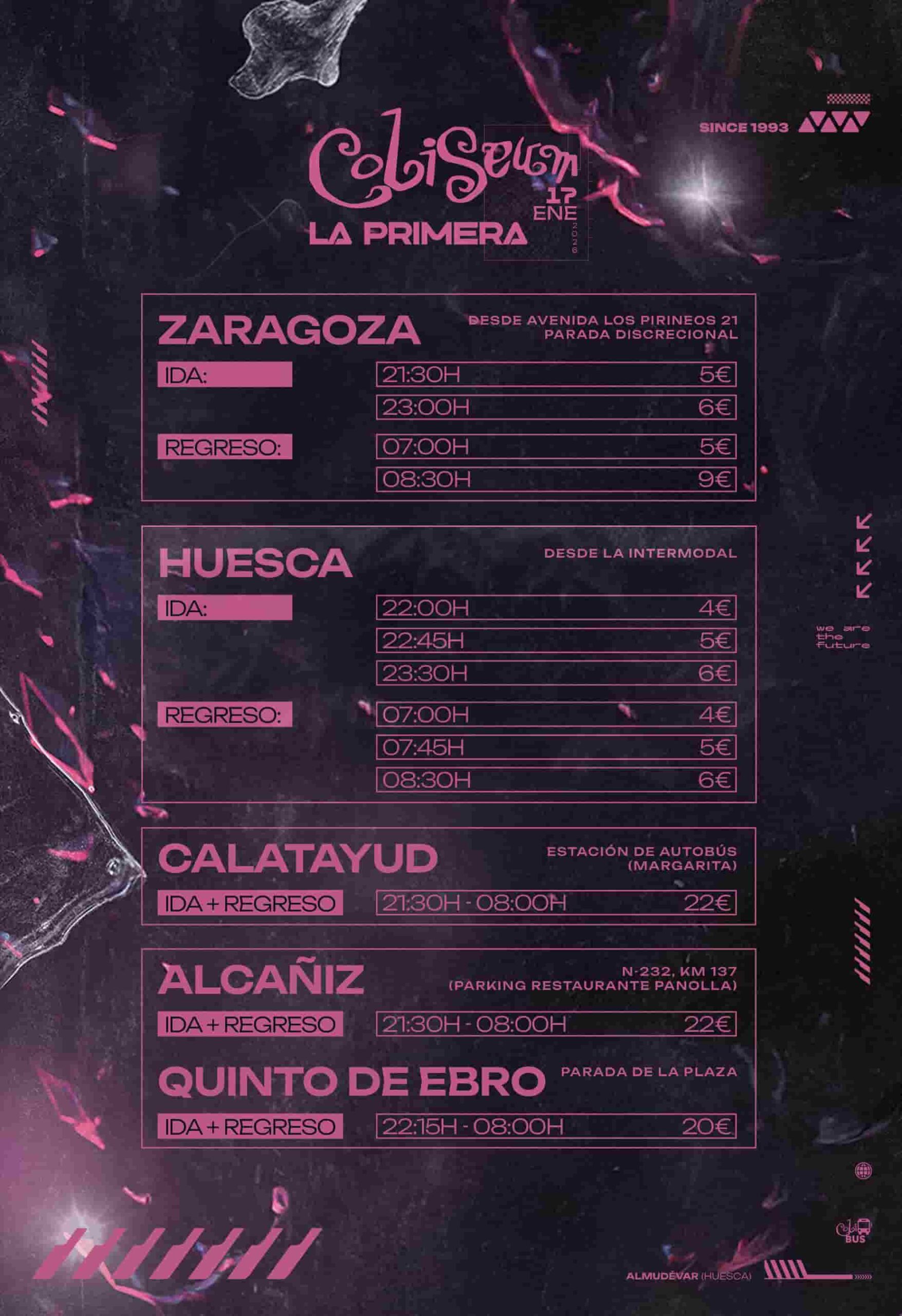 Autobús dirección Coliseum con salida desde Alcañiz parking restaurante La Panolla (N232, km 137).