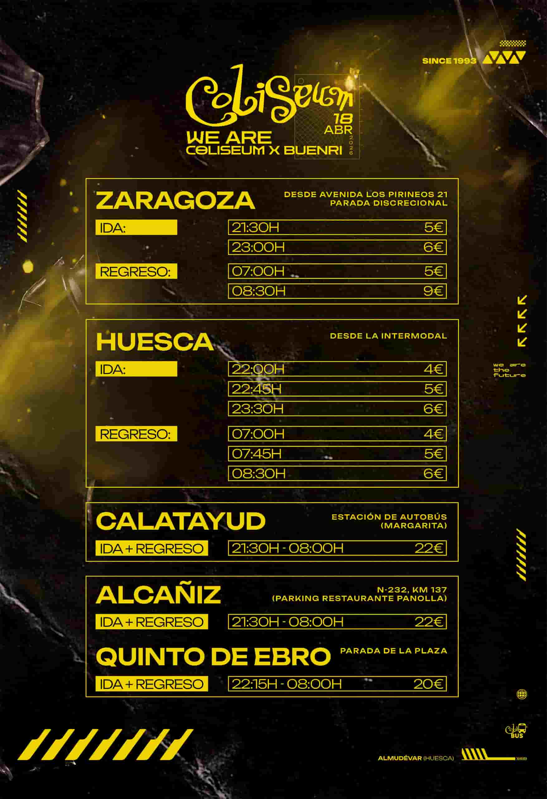Autobús dirección Coliseum con salida desde Alcañiz parking restaurante La Panolla (N232, km 137).