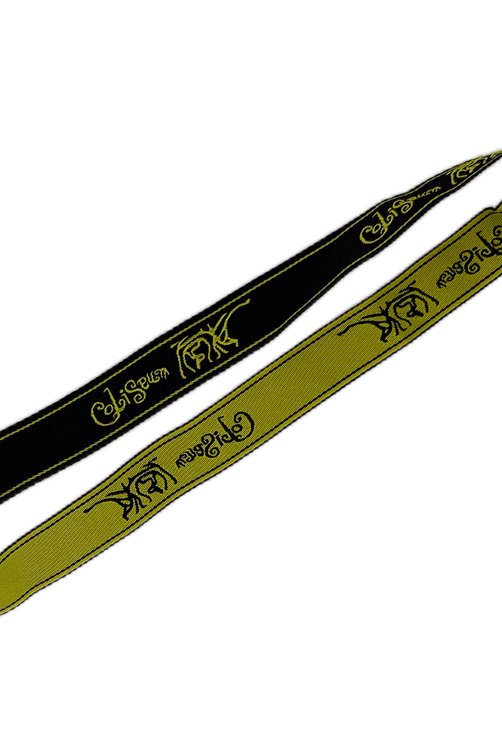 Lanyard en color negro con el logotipo de Coliseum bordado en amarillo.