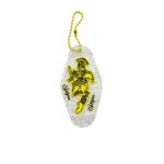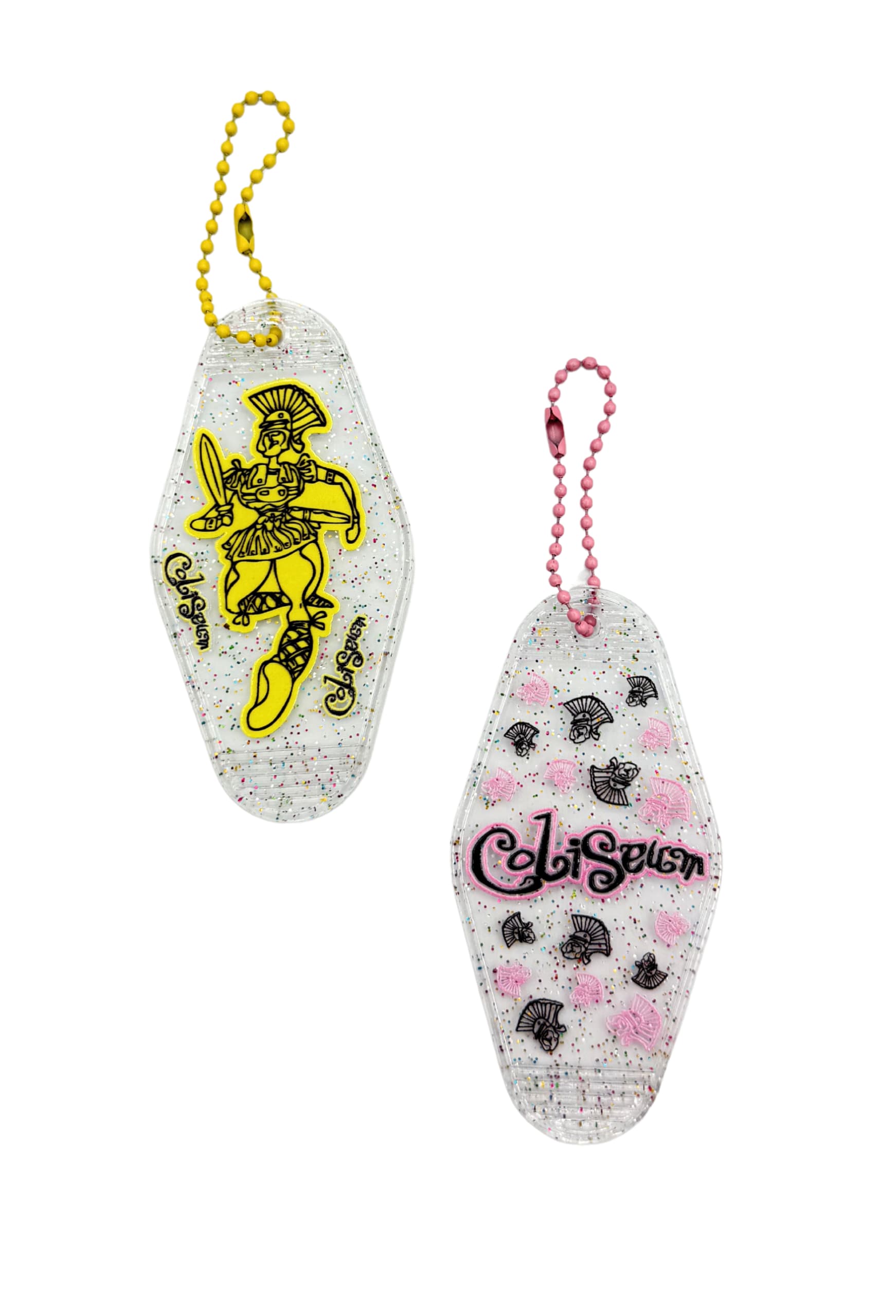 Nuevo llavero Coliseum fabricado en metacrilato con acabado transparente y efecto purpurina, un accesorio original para llevar siempre contigo.