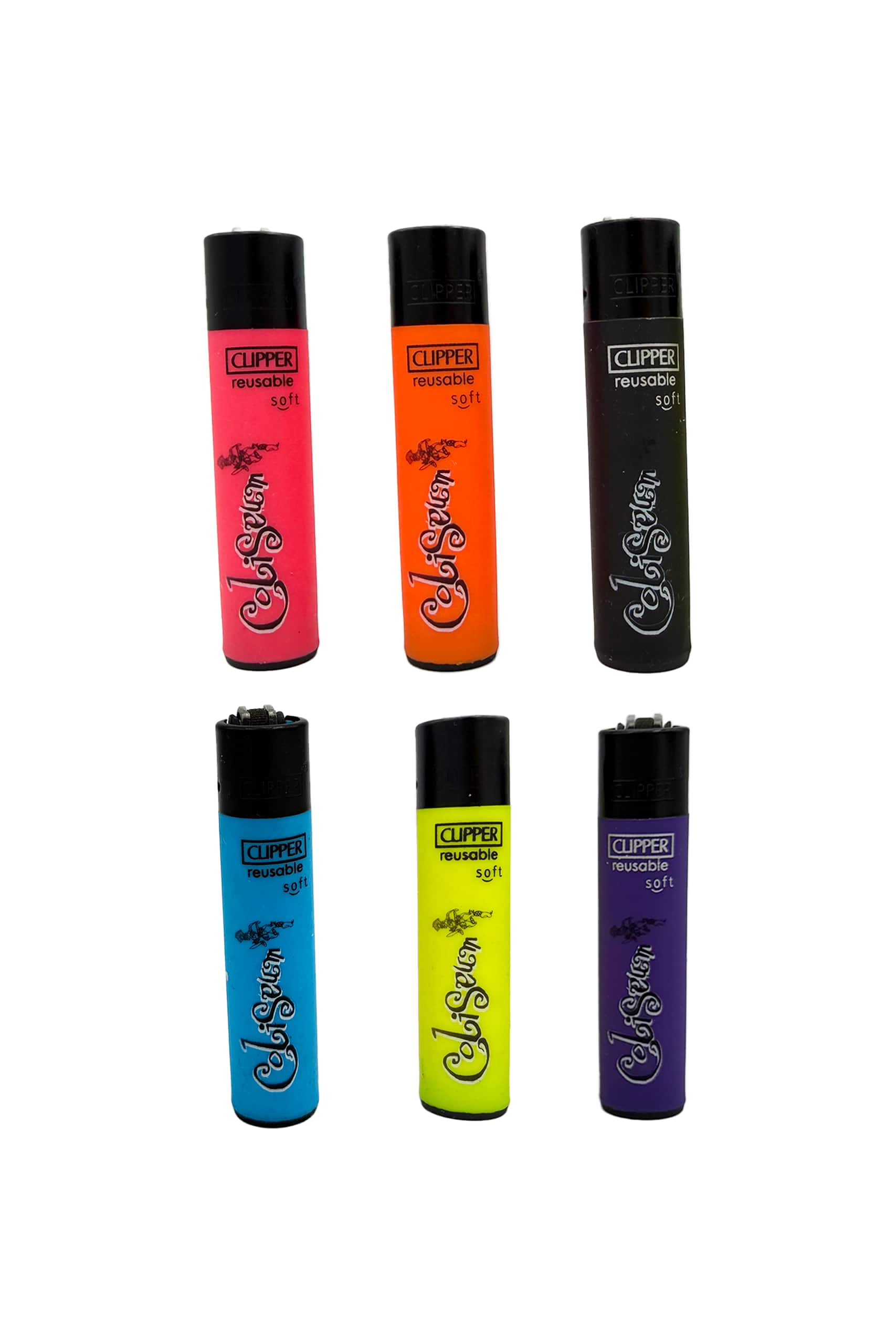 Últimos modelos recibidos de Clippers de Coliseum con tacto suave estilo soft. El mechero tiene el logo y el romano de Coliseum en blanco y negro. y está disponible en diferentes colores como verde fosfórico, azul cielo, amarillo fosfórico, naranja fosforito, rosa fosforito y morado.
