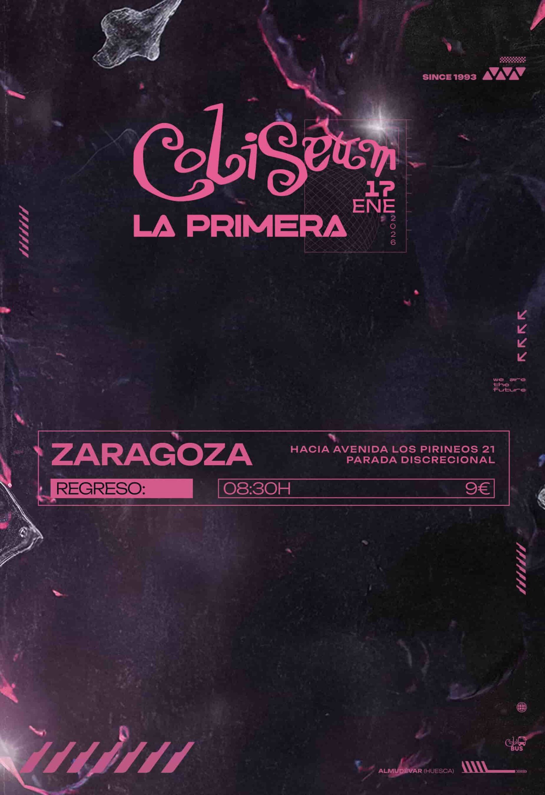 Autobús dirección Coliseum con salida desde Zaragoza avenida Los Pirineos 21.